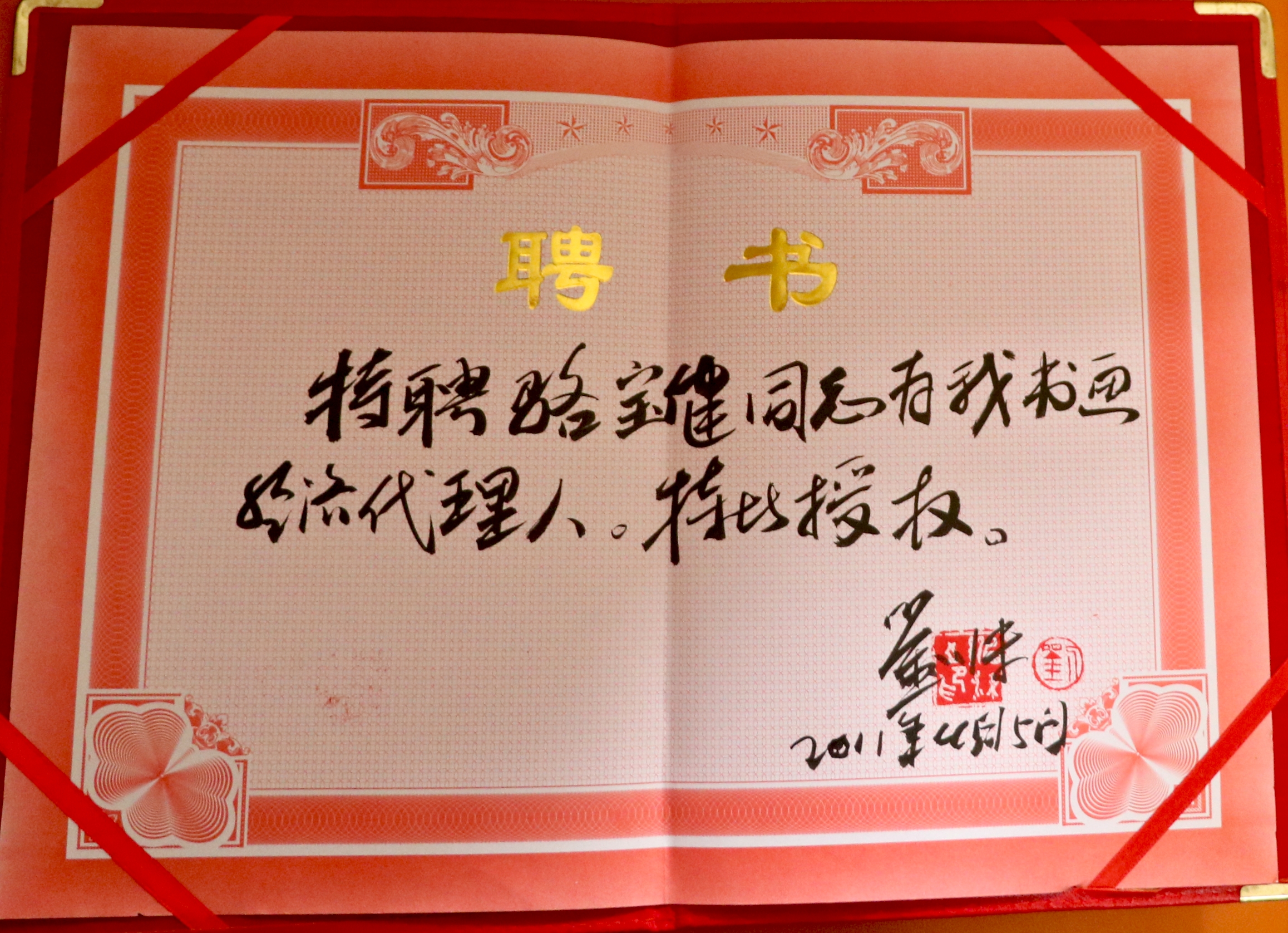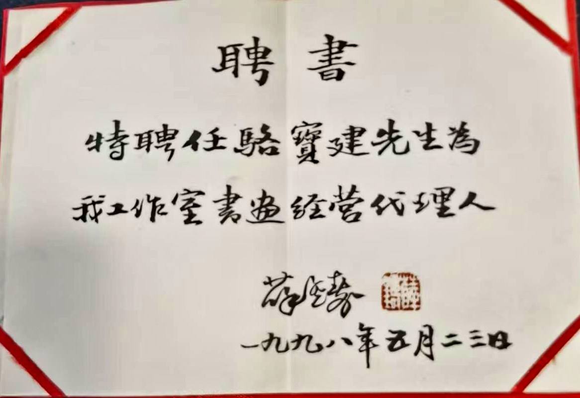 荣获卢兆祥书画经营代理人证书及聘书