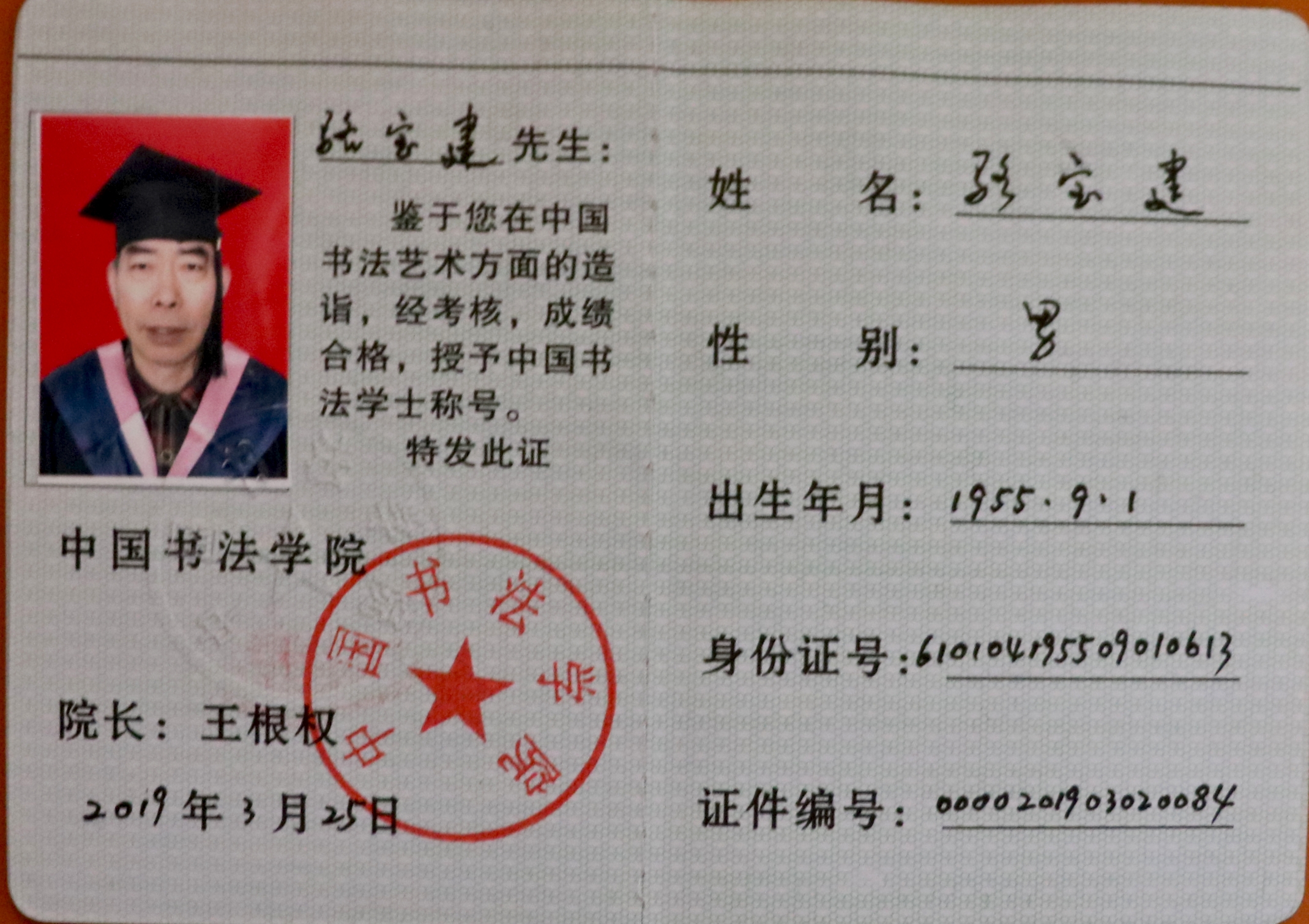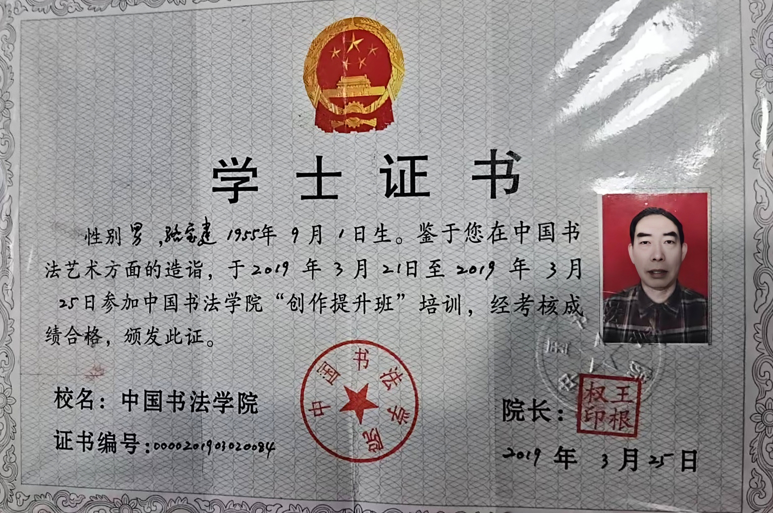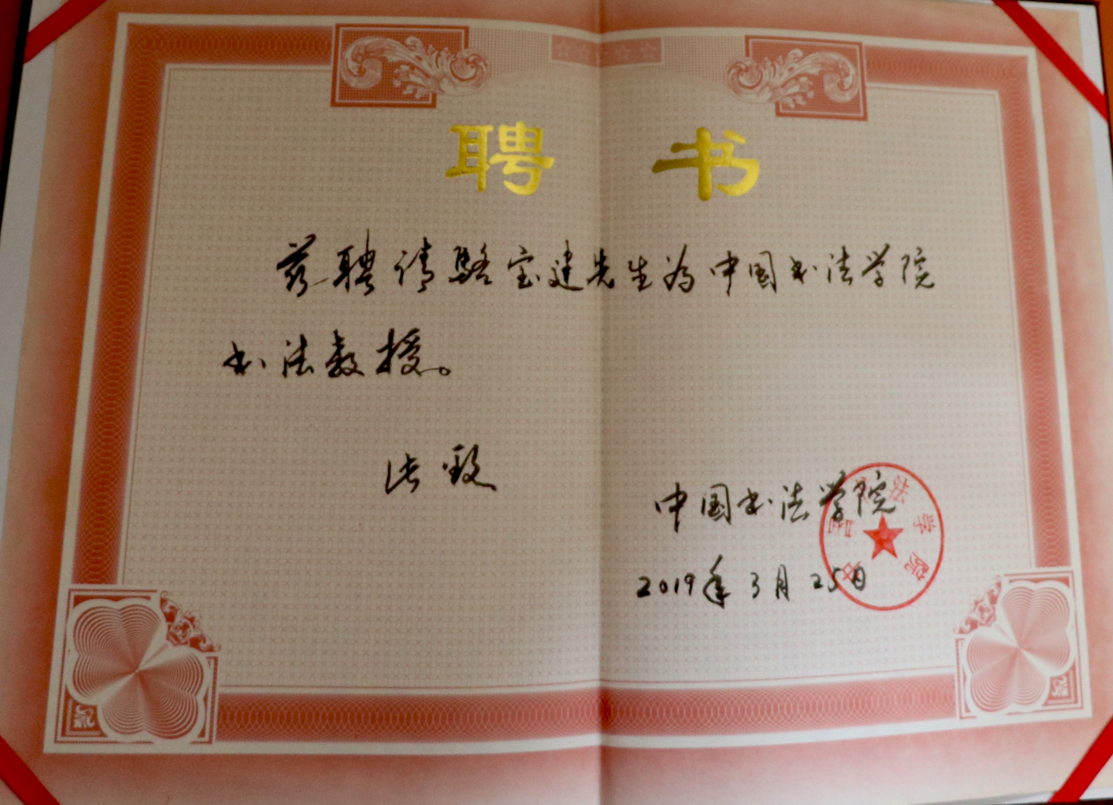 荣获中国书法学院书法教授聘书及学士学位证书