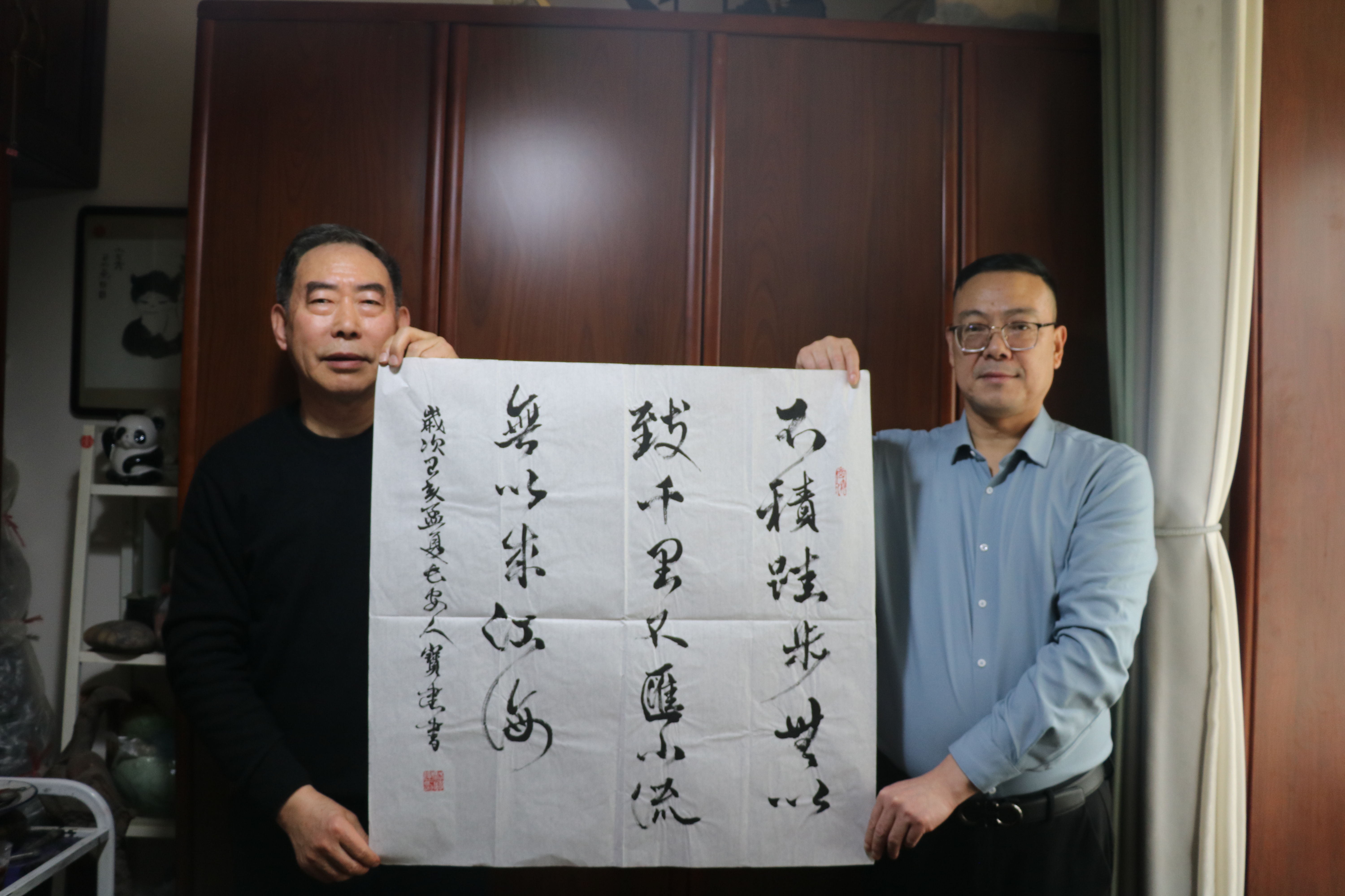 笔名鉴宝, 师从刘自椟、薛铸、吴培基(吴三大)、杜中信、陈云龙等书法名家,书法功底深厚。骆宝建身兼书画经济人、书法艺术家,擅长书画活动策划,毕生潜心钻研隶书、行书、行草、草书、魏楷字体,深耕北魏、汉隶等书法体系研究并在书法领域颇有造诣,屡次获得市政府颁发的书画销售业绩先进证书;